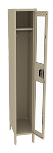 Tennsco's® Single Tier Lockers are roomy enough for just about any secured storage application. Ideal for factories, schools, hospitals and other locations where coats and clothing are stored. Clear yet strong acrylic doors offer visibility of locker contents for security reasons.